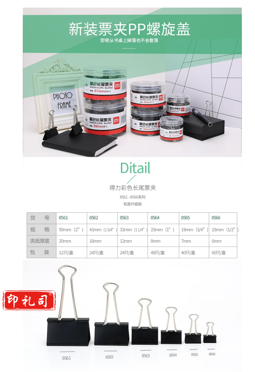 得力/deli 8562 41mm黑色长尾夹 24只/筒