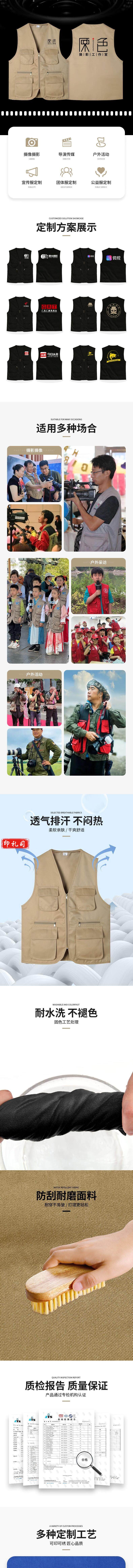 摄影师马甲 定制工作服 记者背心印LOGO多口袋工装 HT-多口袋马甲