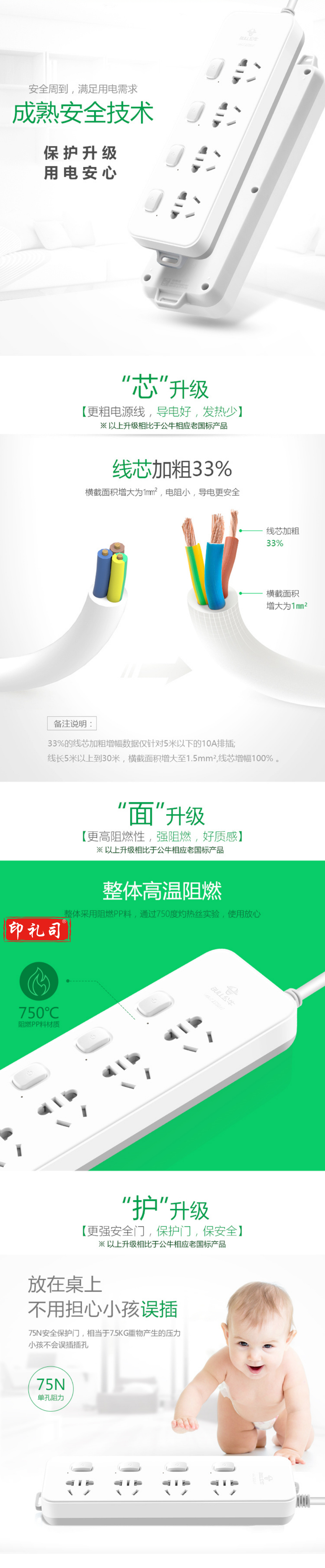 公牛 GN-312 5位分控 3米线 接线板/拖线板 超功率保护插座 230209120418