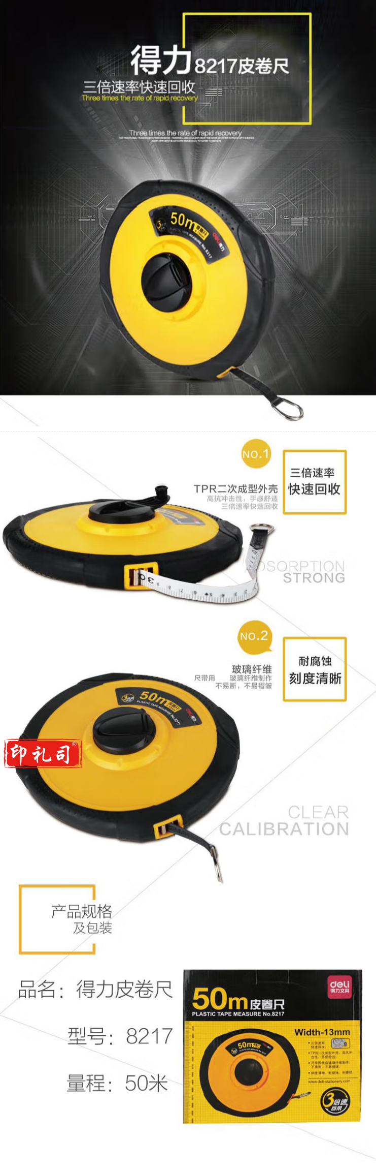 得力(deli)50m测量精准变速皮卷尺/软皮尺/工程测量尺 办公用品 8217 230118143212