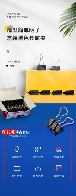 得力9541-1#长尾票夹50mm盒装(黑)(12只/盒) 230117160952