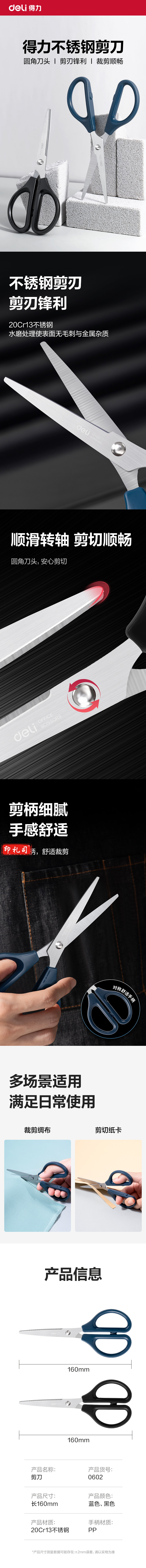 得力0602办公剪刀(黑、蓝颜色随机)(把)