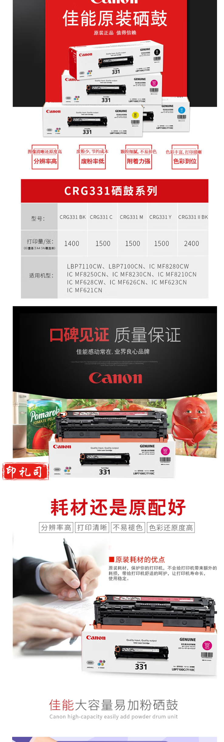 佳能(Canon)CRG-331 Y黄色硒鼓(适用LBP7100 iC MF8210 8230 8250 8280 621 626 628) 202212263472