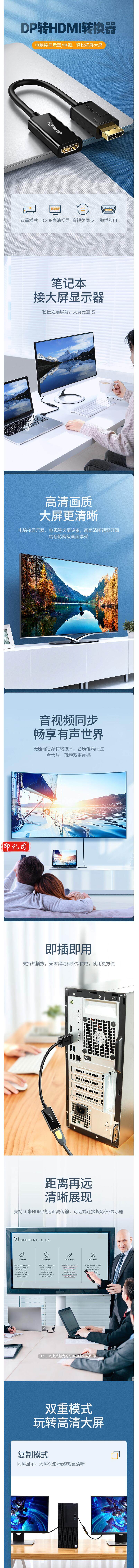 绿联(UGREEN)DP转HDMI转换器线 高清DisplayPort公转HDMI母转接头 笔记本电脑台式机接显示器投影仪 40362(单位:条)
