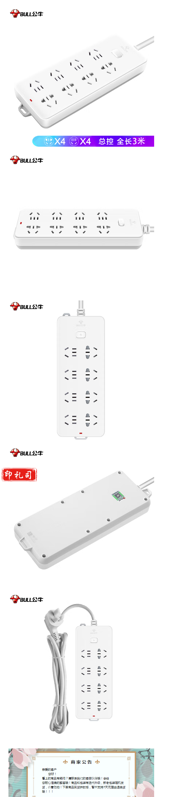 公牛 GN-217 3米线长 8位总控 插线板/拖线板(过载保护) 230117164827