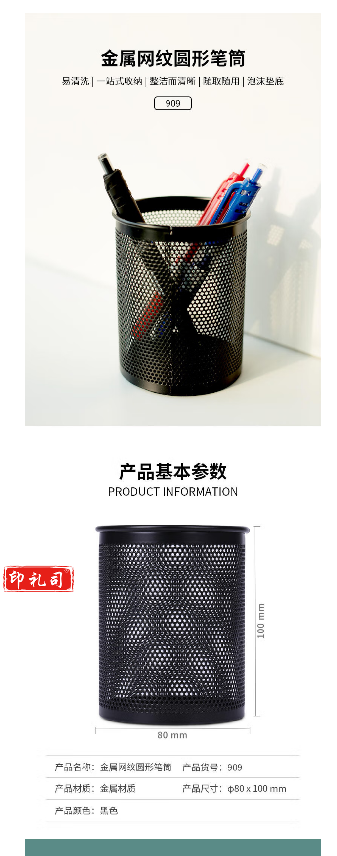 得力(deli) 909 笔筒 网状圆型 黑色