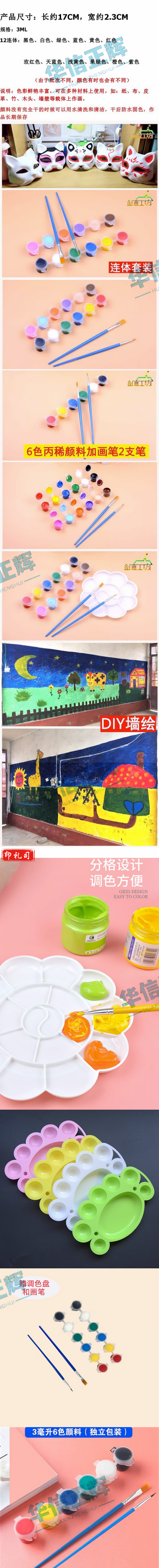 防水丙烯颜料套装12色连体儿童diy美术绘画涂鸦石膏颜料条