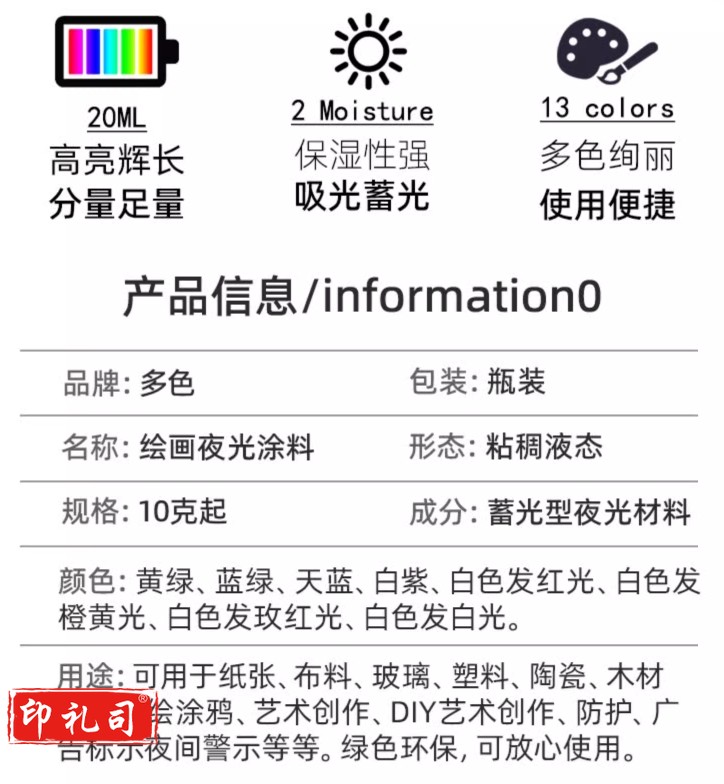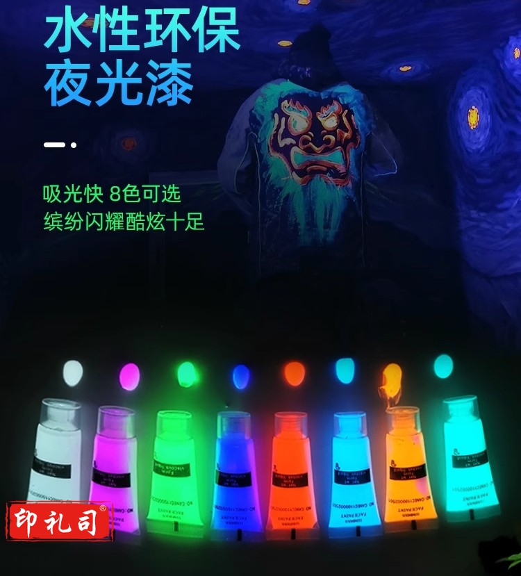 超亮手绘夜光漆防水荧光液水性发光粉夜光颜料荧光粉制夜跑荧光漆 10克天蓝色1支