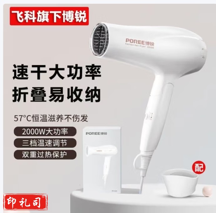 博锐(POREE) 电吹风机家用大功率吹风筒可折叠便携式电吹风机冷热风理发店发廊款2000W PH1626