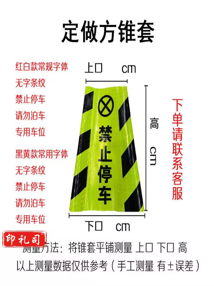 路锥套反光套圆锥筒套锥桶锥形桶反光膜雪糕筒皮交通路障贴纸 方锥 黄黑禁止停车 36-39高