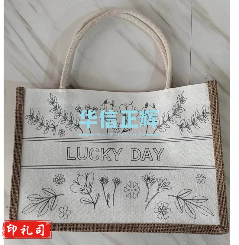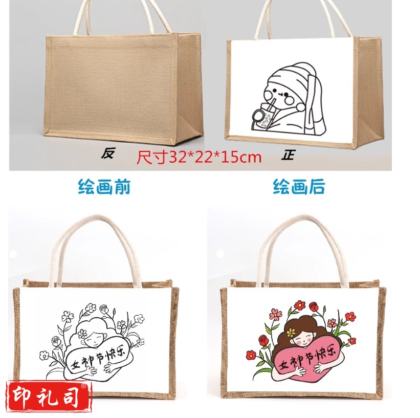 手工DIY涂鸦麻布袋 线稿学生手绘帆布包防水龙年手提袋子定制logo