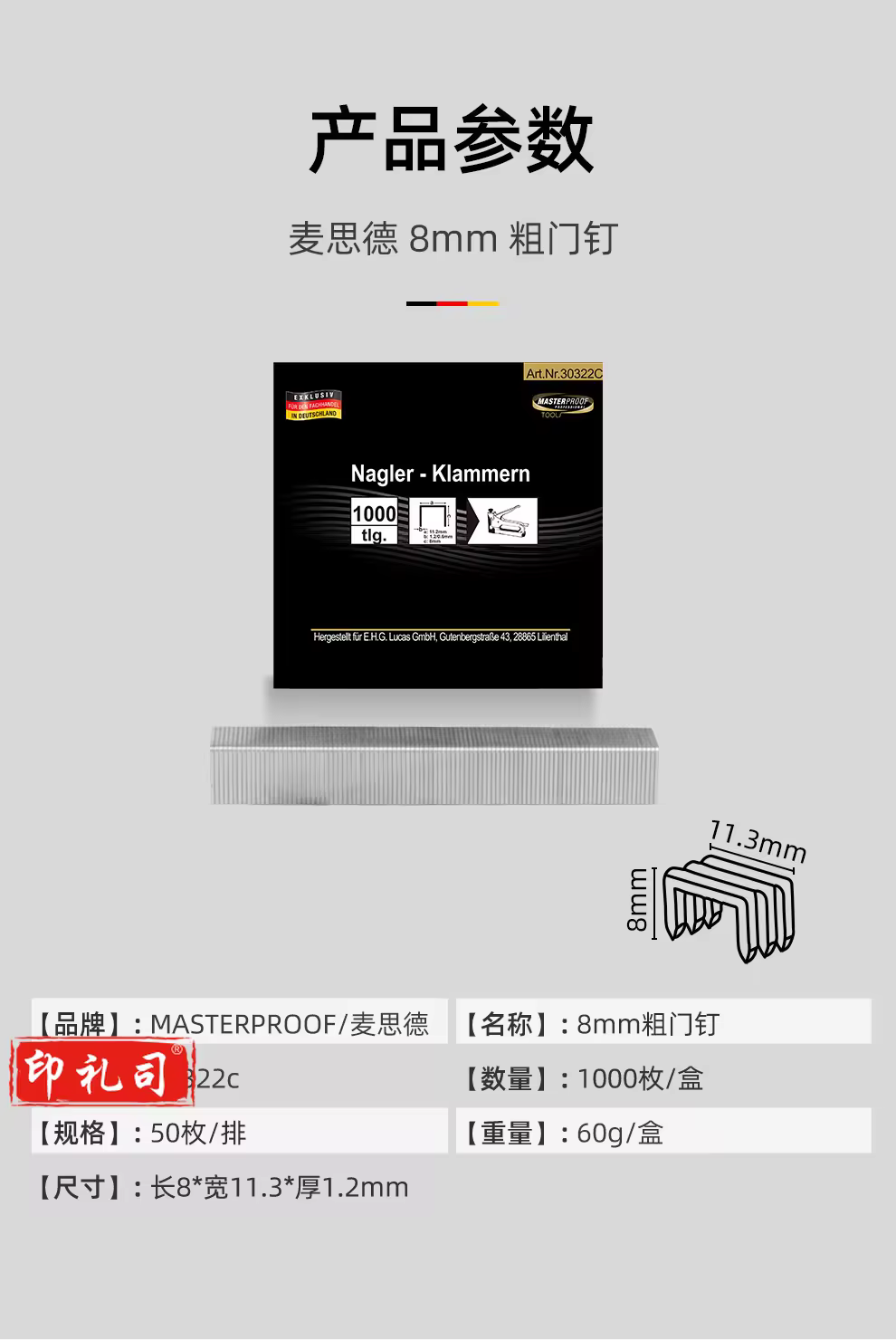 麦思德(MASTERPROOF)手动码钉枪打钉枪射钉枪打配套钉子1008J 8mm 粗门钉 1000枚