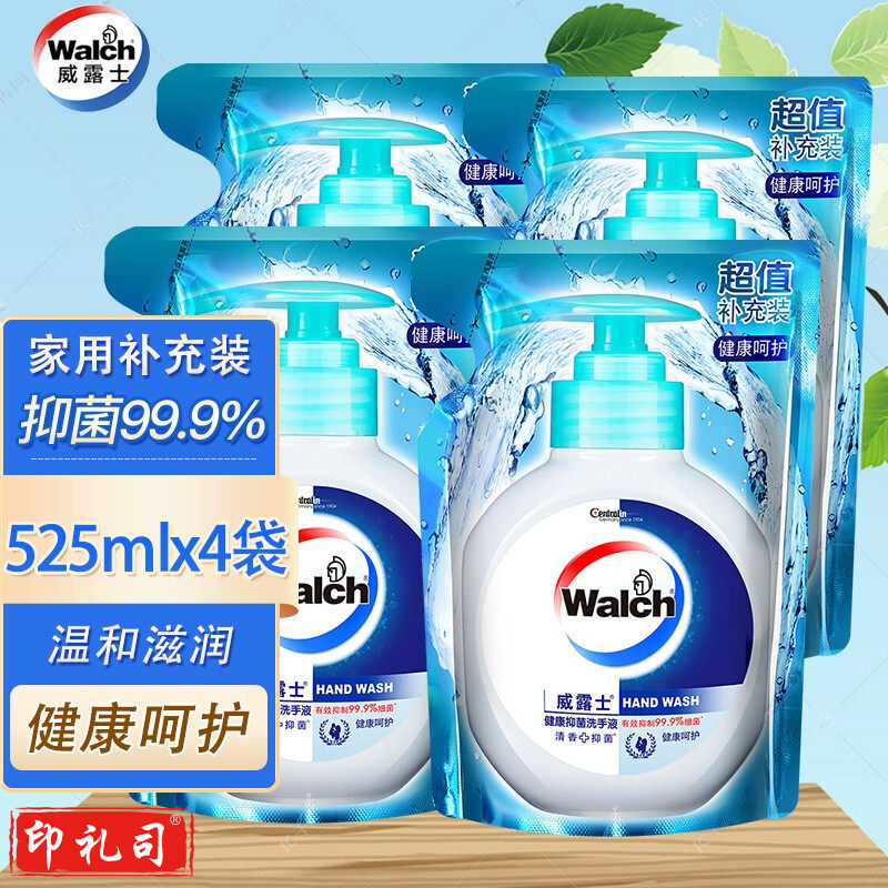 威露士健康抑菌洗手液(清新薄荷)袋装525mlx4袋