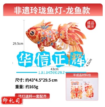新年春节元宵蛇年非遗玲珑鱼灯手工diy材料儿童花灯金鱼灯笼摆摊 非遗玲珑鱼灯-龙鱼款【PP材质】