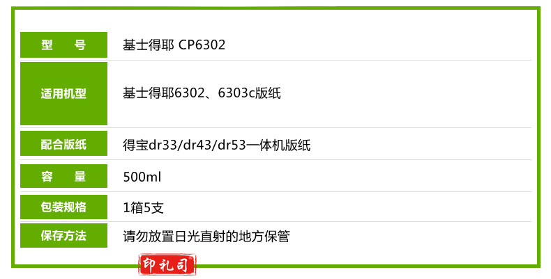 得印(befon)CP6302C(两只起售)适用CP6302C油墨 500ML 基士得耶CP6302C/CP6303C/理光3443 速印机 一体机