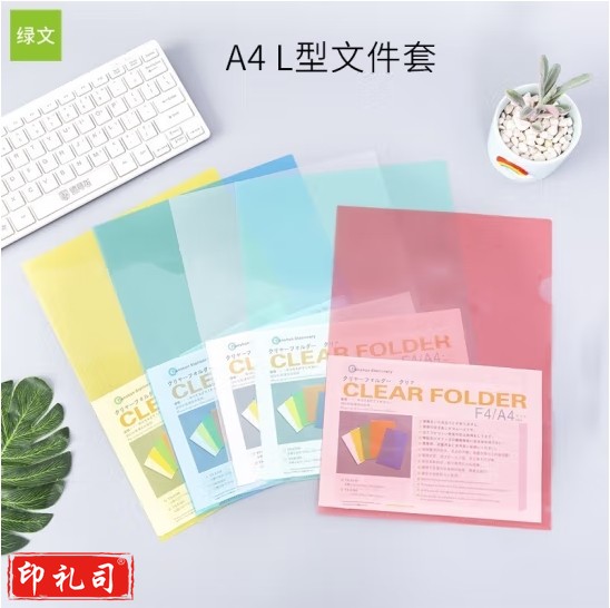 绿文(LUWEN) L型夹文件袋单片夹 文件套二页插页袋塑料办公用品资料夹 E310 红色 24个装