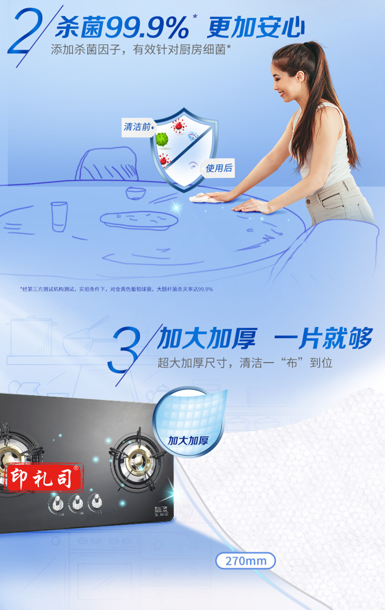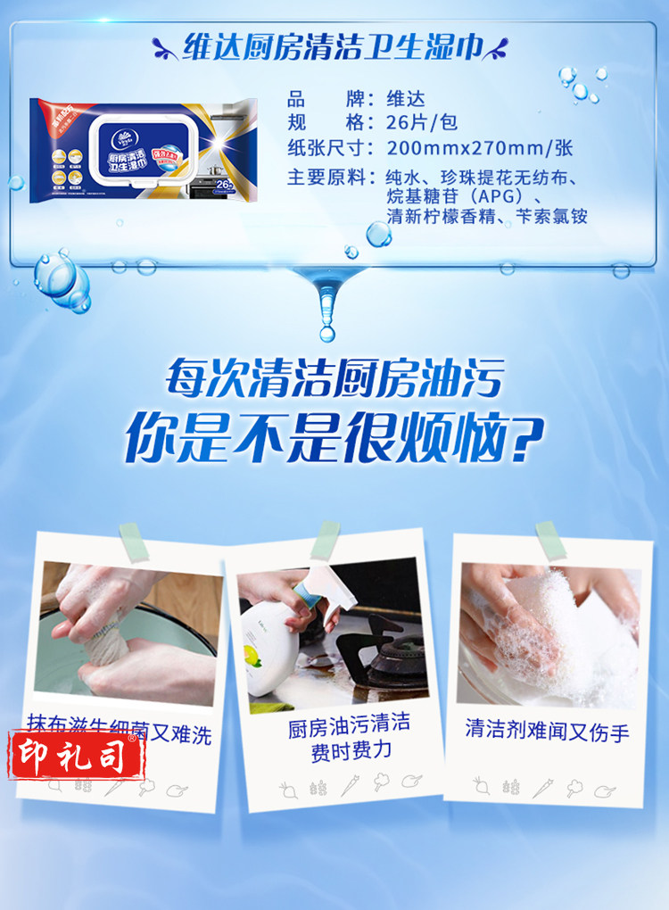 维达(Vinda)厨房用纸 26片*单包厨房湿巾 超大加厚尺寸 一片去油去污 厨房纸
