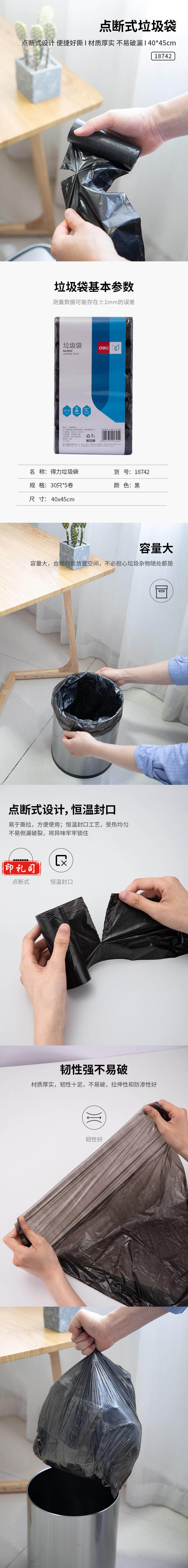得力18742垃圾袋(黑色)(40*45)(5卷/包)HXZH07280855499699