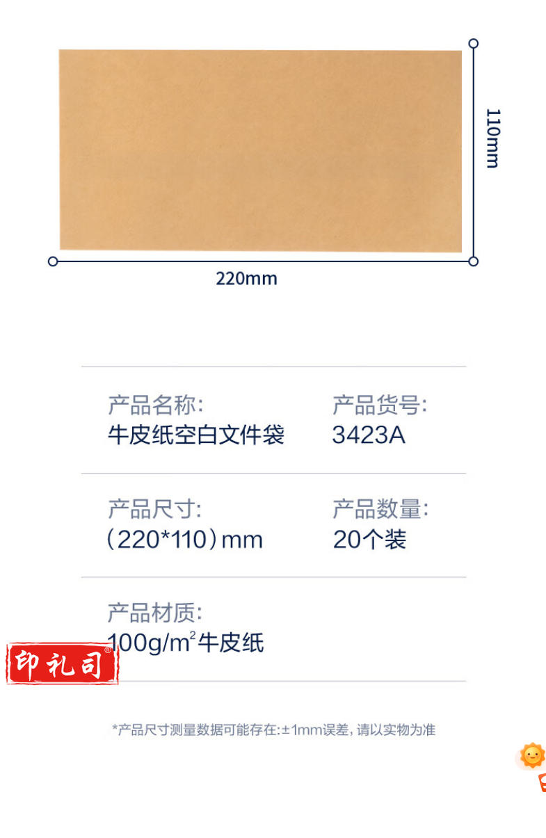 得力3423A牛皮信封(米黄色)-5号(20个/包)