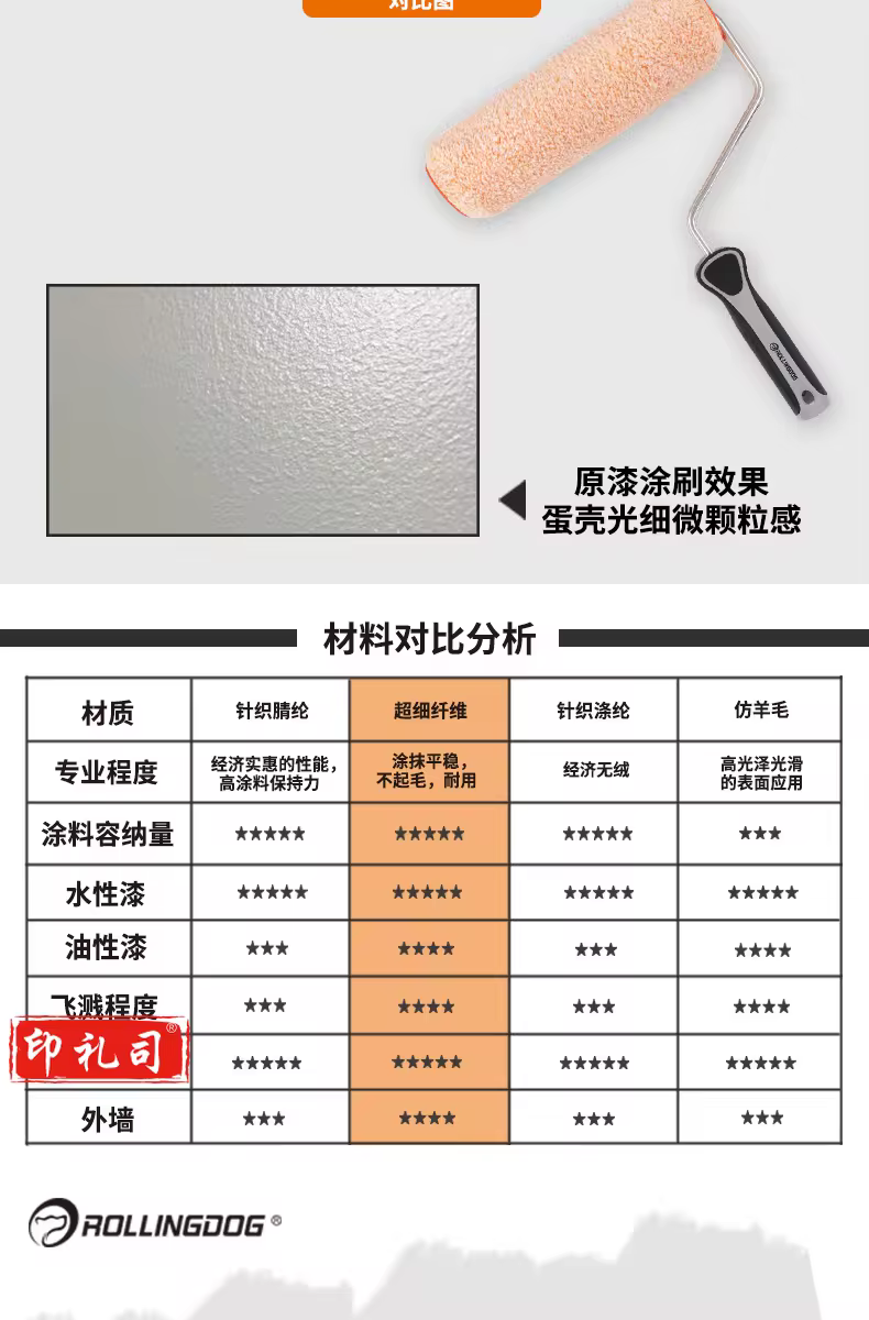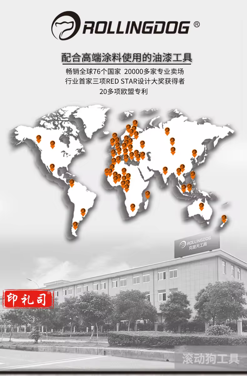 滚动狗 ROLLING DOG粗毛乳胶漆滚筒刷 蛋壳光进口涂料墙面涂刷工具 4寸滚筒刷60153