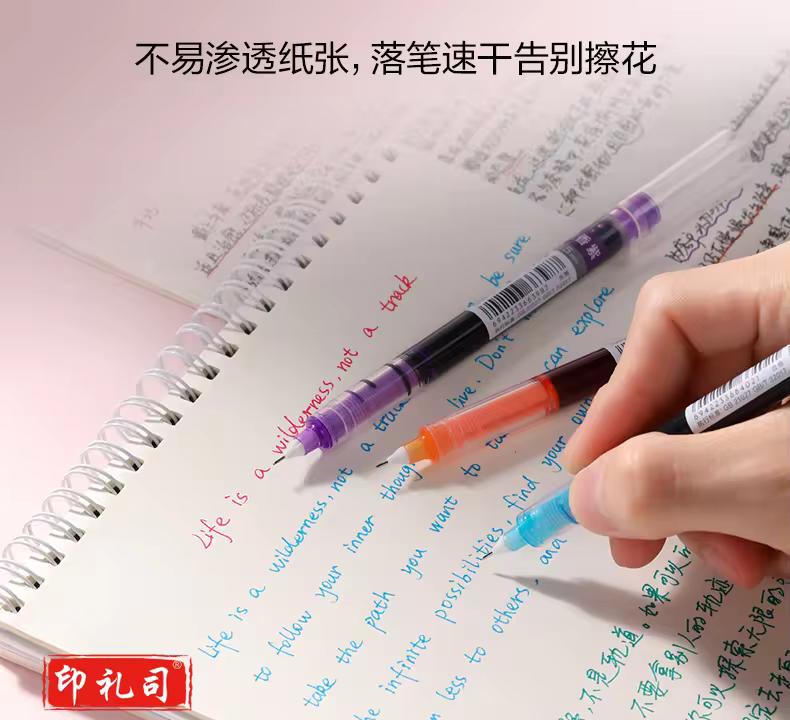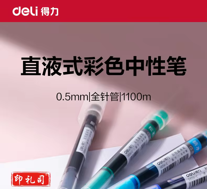 得力(deli)彩色直液笔套装 0.5mm全针管学生签字笔中性笔 8色手账水笔走珠笔 笔记宝藏8支/盒S856-C8