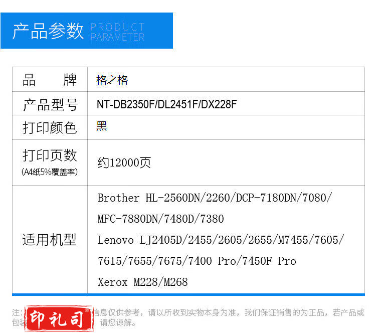 格之格NT-DB2350F/DL2451F/DX228F商用专业版 黑白鼓 鼓组件 Brother原装型号DR-2350 12000页