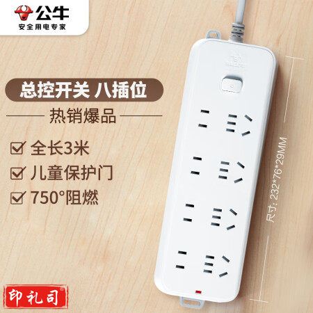 公牛(BULL)插座/插线板/插排/排插/接线板/拖线板 8位总控全长3米 GN-B3440