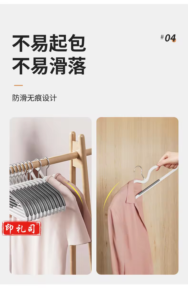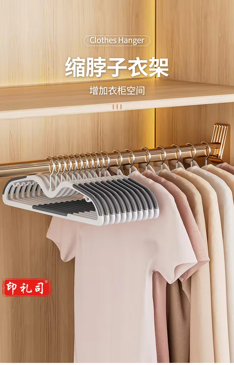 优勤缩脖子衣架无痕家用挂衣防滑短颈加厚加粗衣柜专用省空间神器 短颈防滑干湿衣架30只装-灰色