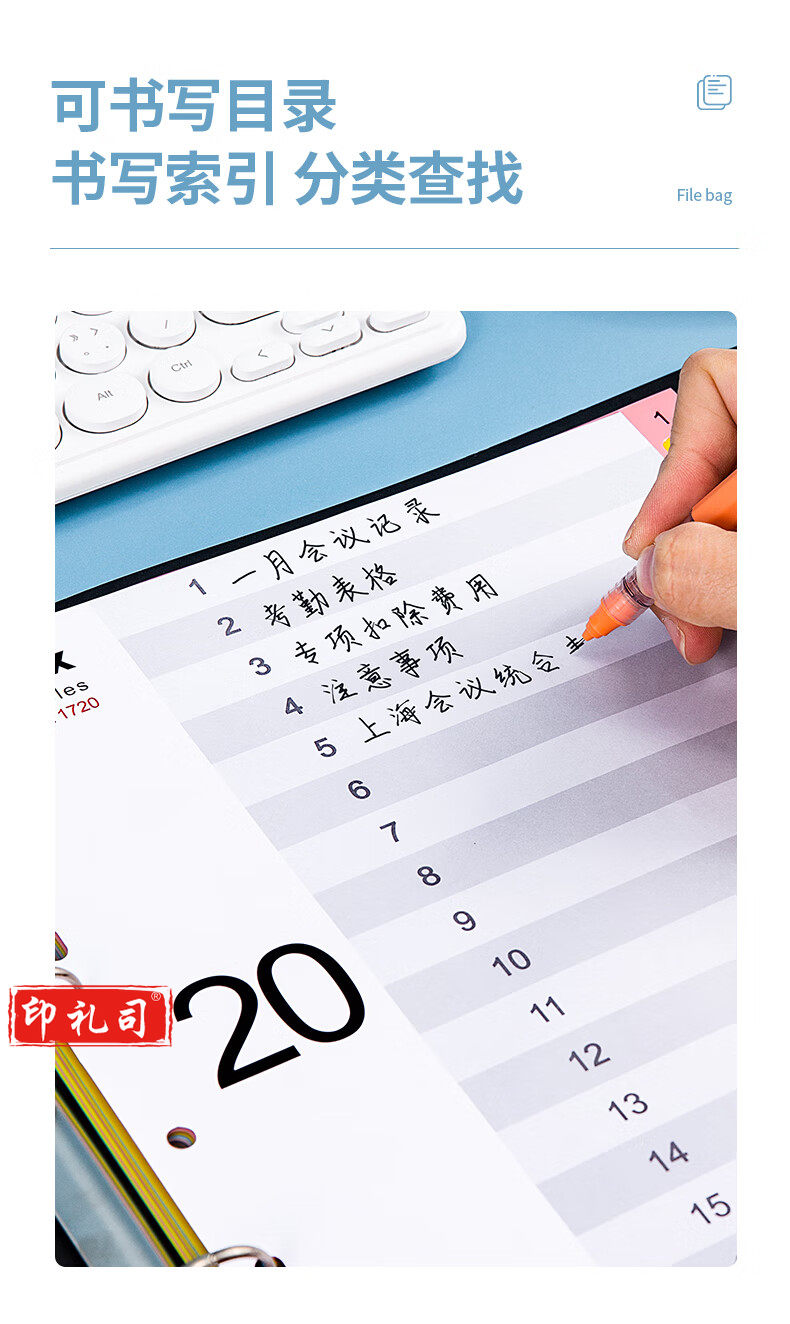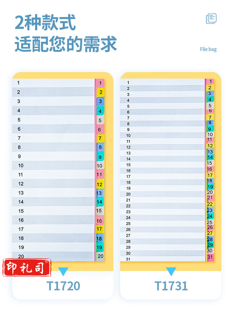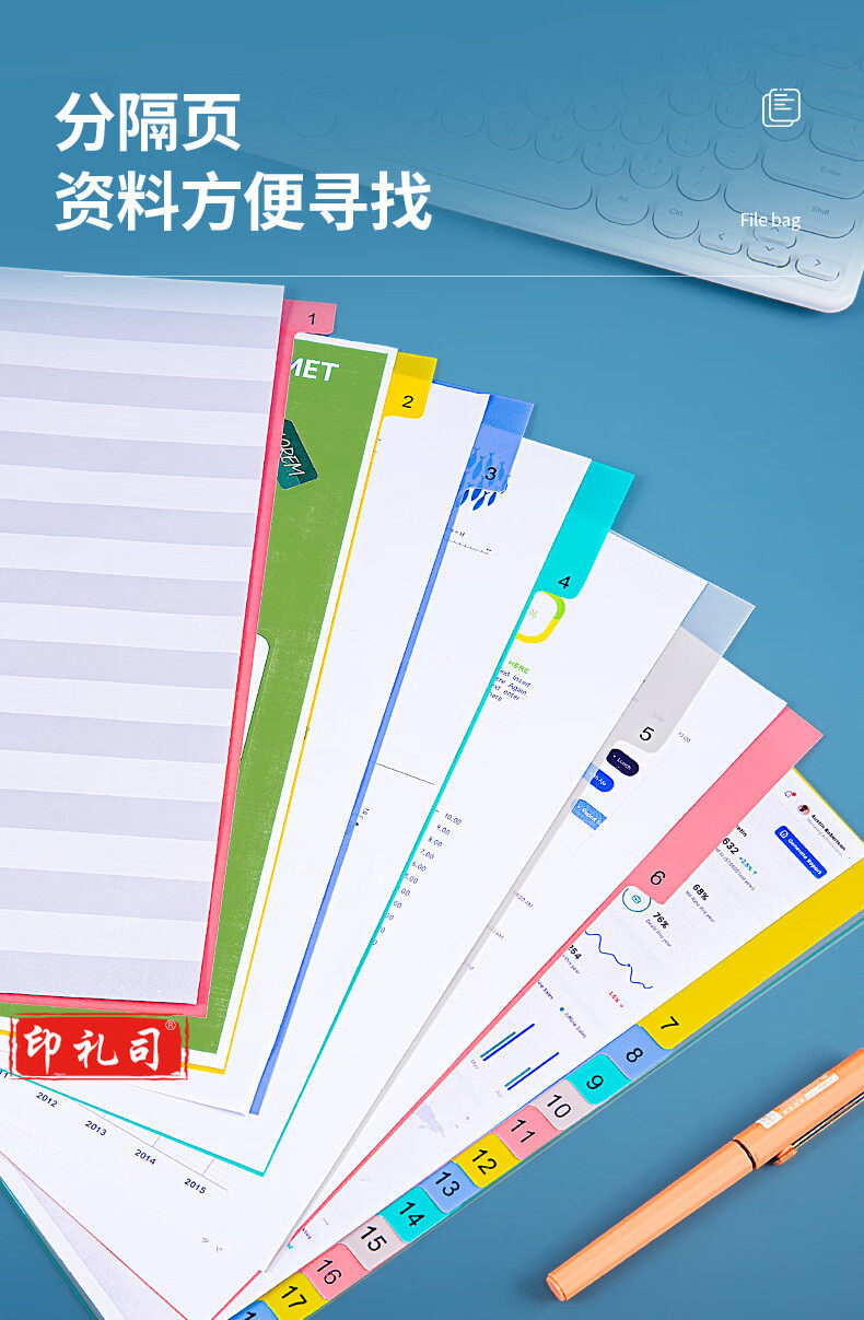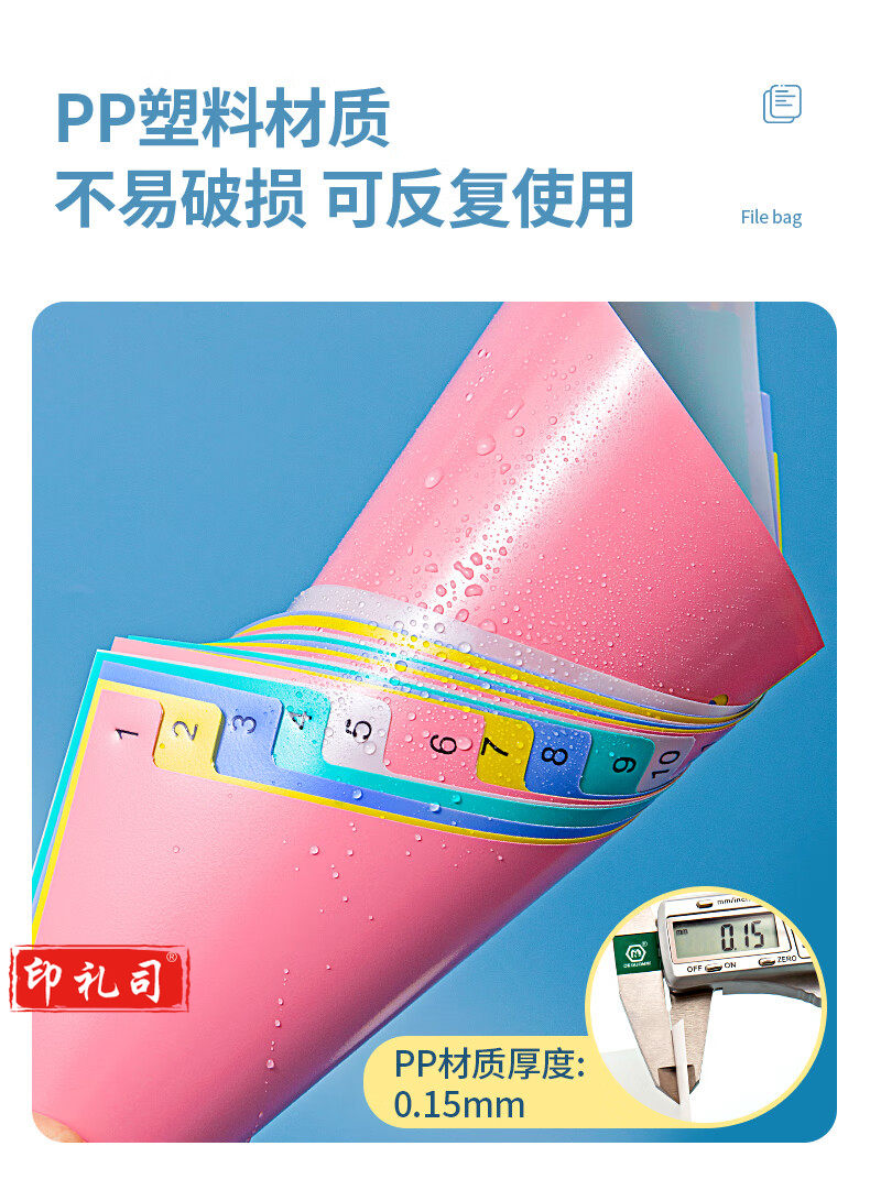 金得利11孔分页卡a-4隔页纸31页1套彩色index数字索引卡文件夹活页纸塑料pp分类卡目录页标签办公用品T1731