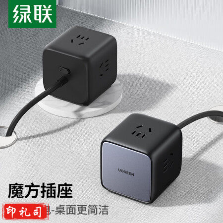 绿联15524 智充魔盒桌面插座/插排/插线板/新国标插板拓展接线板 宿舍办公家用拖线板 3位总控全长2米