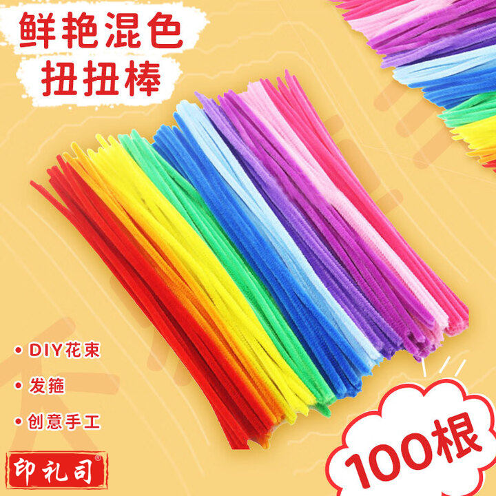 马卡龙毛根扭扭棒花束手工diy材料包加密彩色毛条发箍妞妞棒 马卡龙浅粉色100根