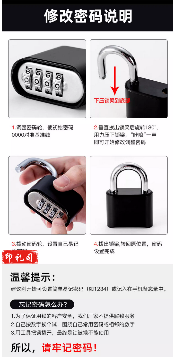 密码锁挂锁 加长梁柜子锁室外仿铜锁门锁大锁子底开4位密码大挂锁 银色(防误改短梁)