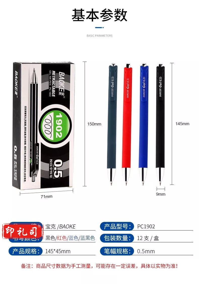 宝克(BAOKE)E PC1902 按压中性笔 0.5mm/黑色 12支/盒