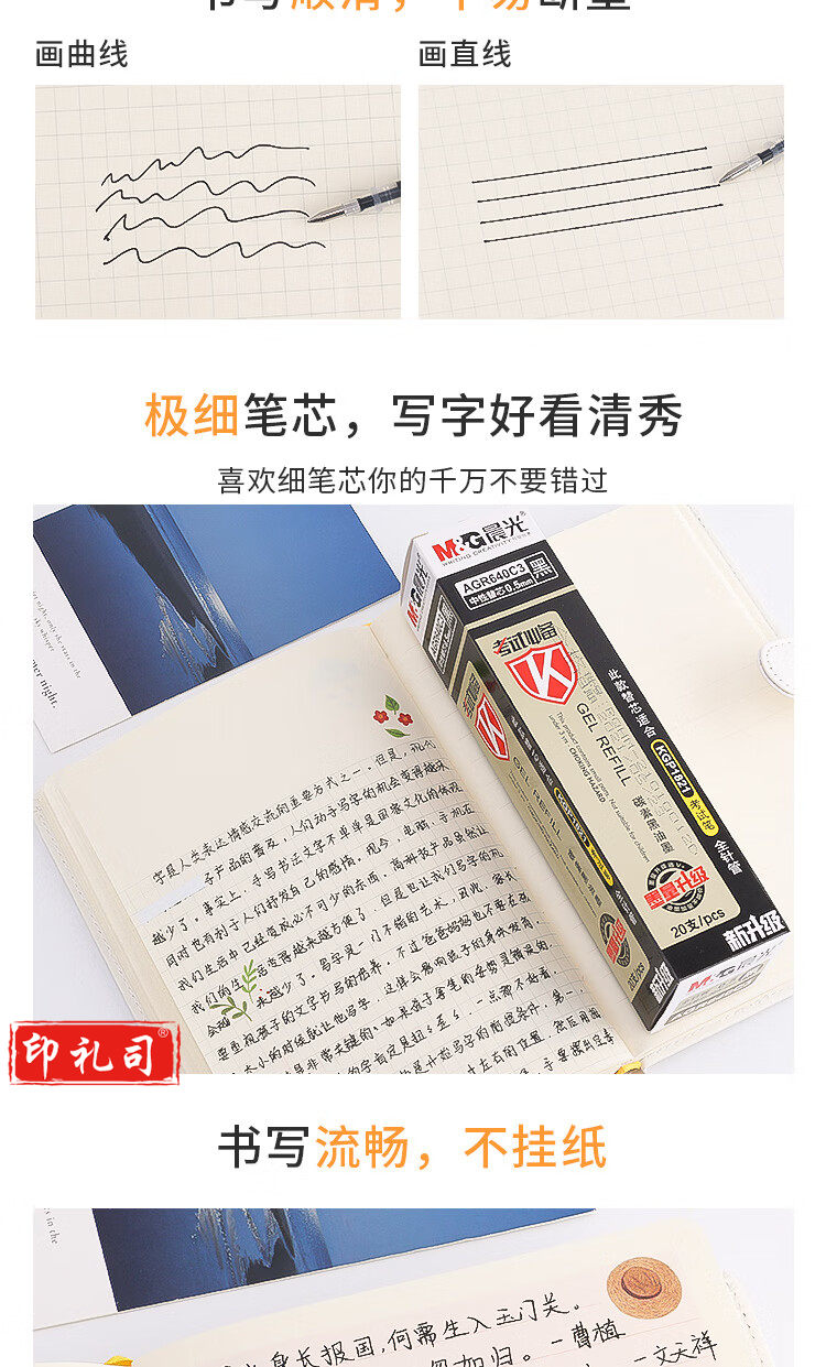 晨光(M&G)笔芯中性笔替芯0.5mm水笔芯优品替芯孔庙祈福学生考试用文具批发 速干-子弹头 60支 0.5 黑色 7071