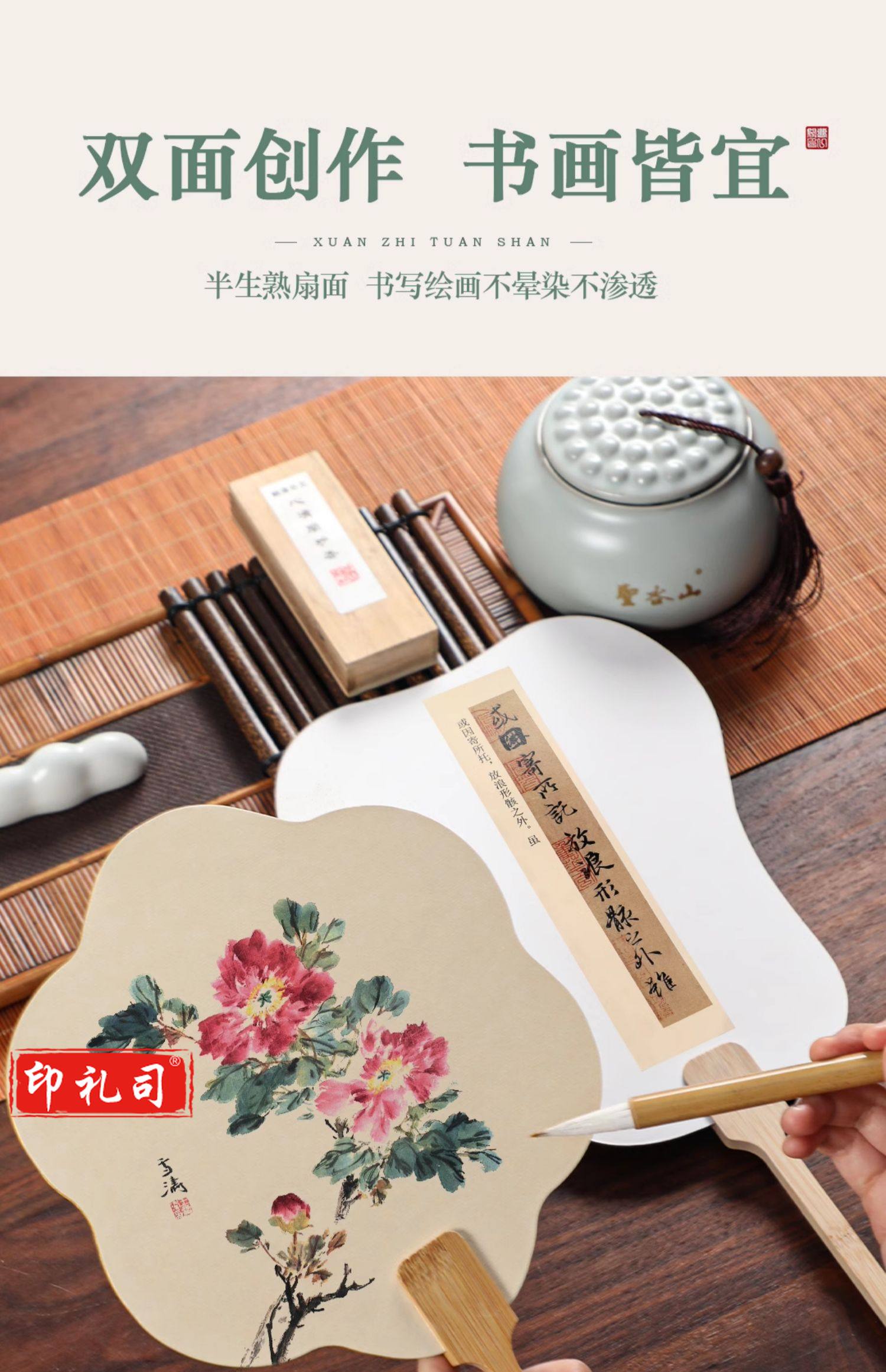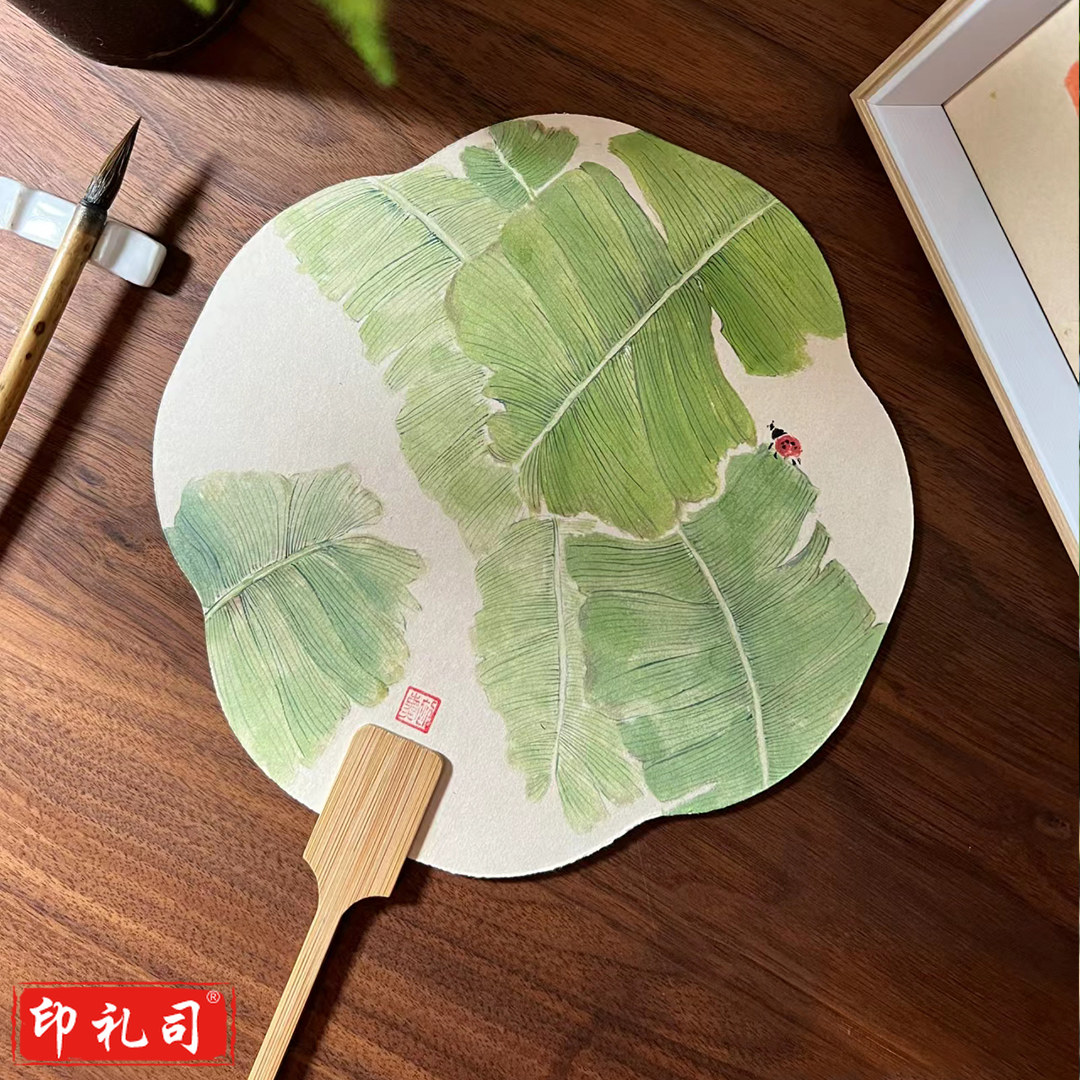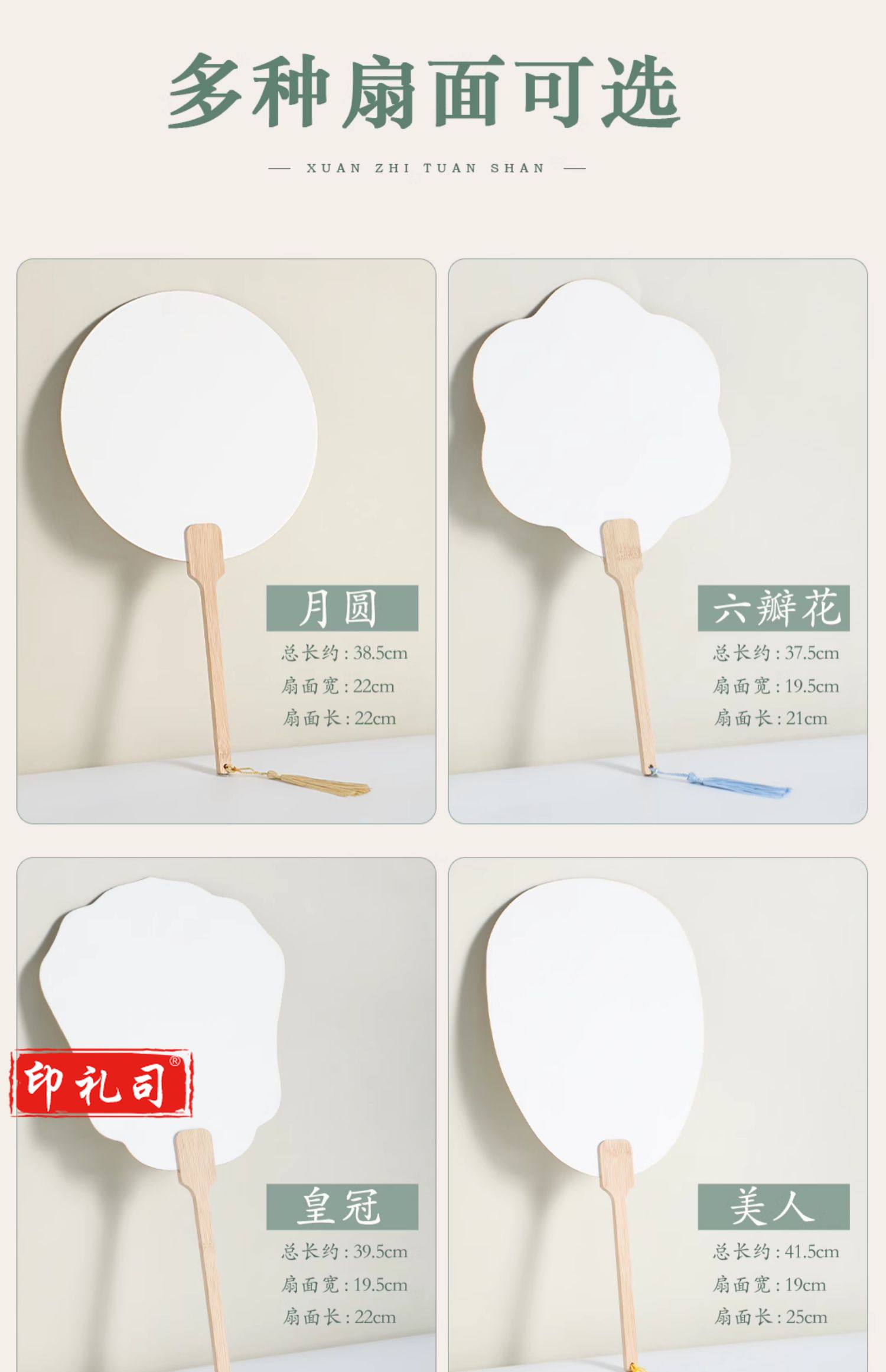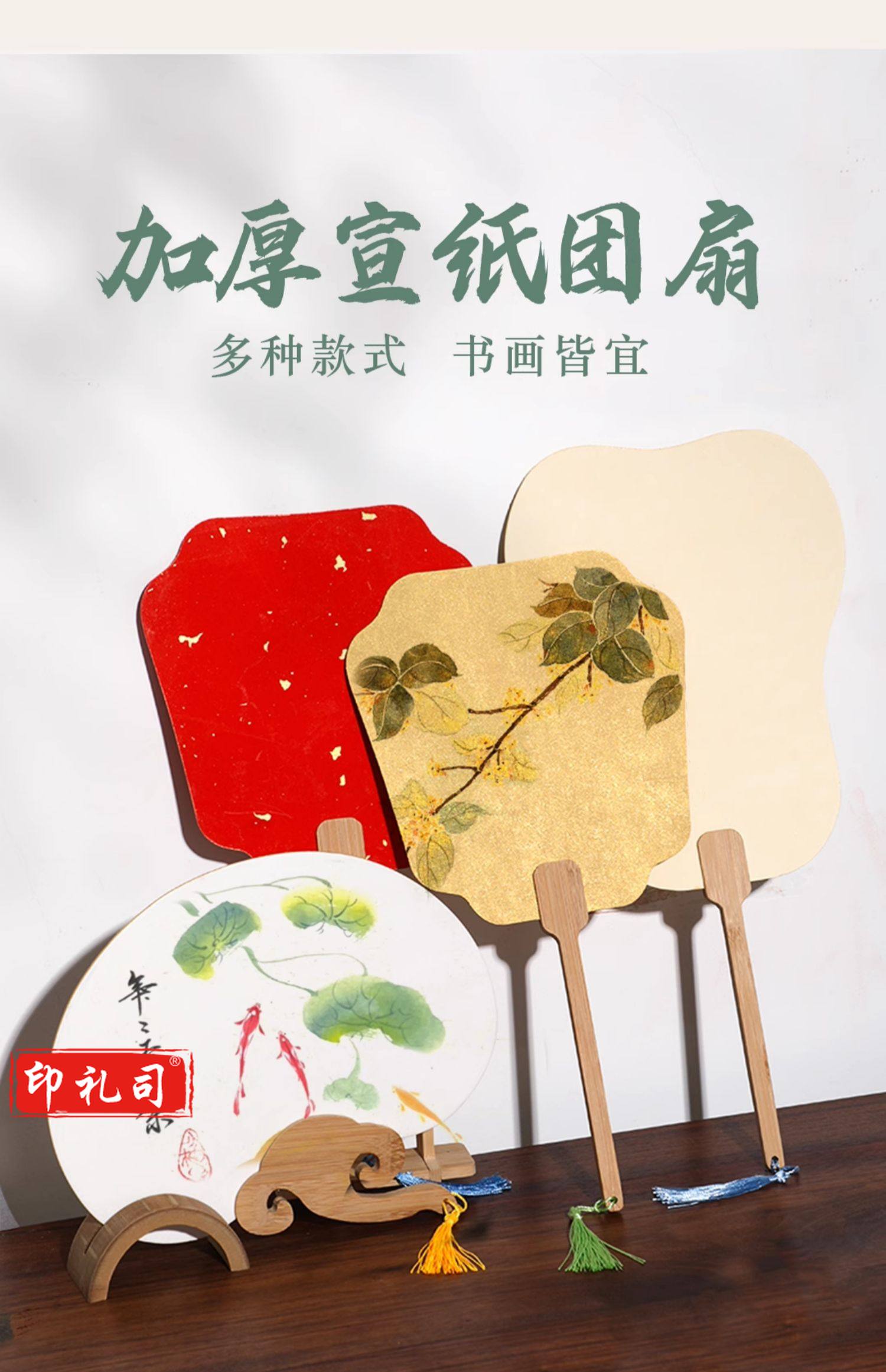 加厚宣纸团扇双面空白纸扇漂漆拓印扇卡纸扇面手绘扇子diy定制扇 芭蕉-白宣