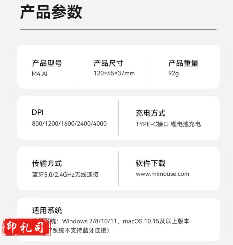 咪鼠科技(MiMouse)M4AI 2.0智能ai鼠标 支持AI智能写作PPT制作 语音打字翻译无线充电办公 白色