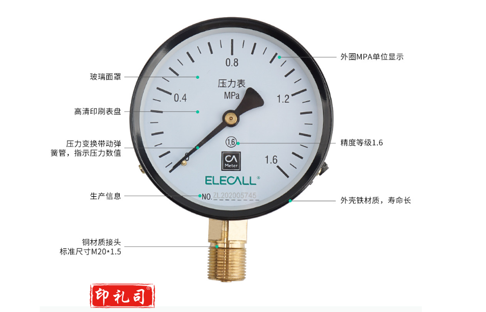 亚普特 Y100-1.6压力表