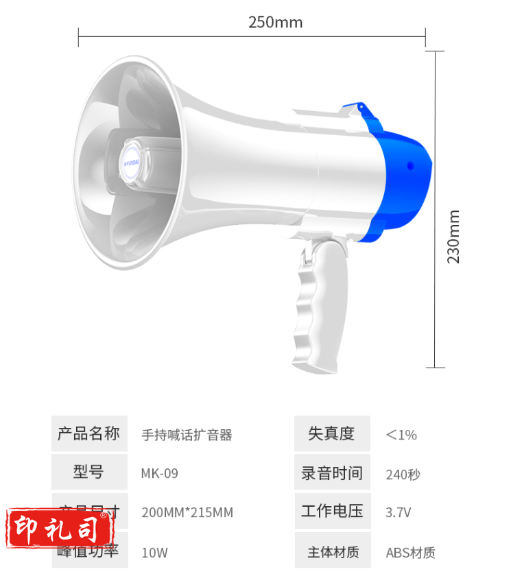 HYUNDAI现代MK-09A 扩音器喊话器录音大喇叭扬声器户外手持宣传可充电大声公便携式小喇叭扬声器 白色