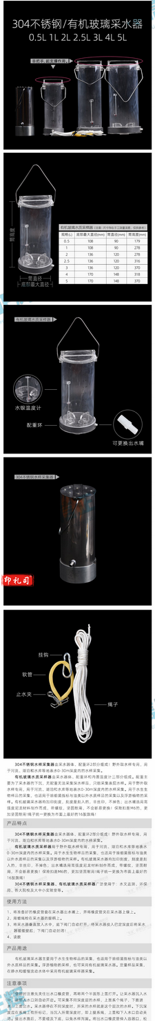 有机玻璃水样采集器 水质采样取样桶 手提式地表水采水器 深水污水废水 不锈钢样取样瓶 1L【有机玻璃】升级特厚HXZH08290925142570