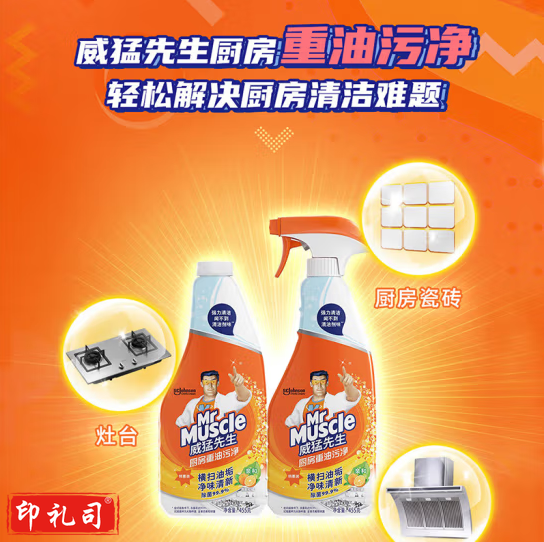 威猛先生(Mr Muscle) 油污清洁剂 455g+455g替换装 柑橘香 厨房重油污净