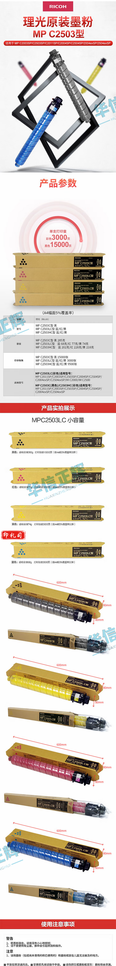 理光(Ricoh)原装MPC2503C黑色粉盒适用MPC2003SP/C2011SP/C2503SP/C2004exSP复印机碳粉盒(15000页)
