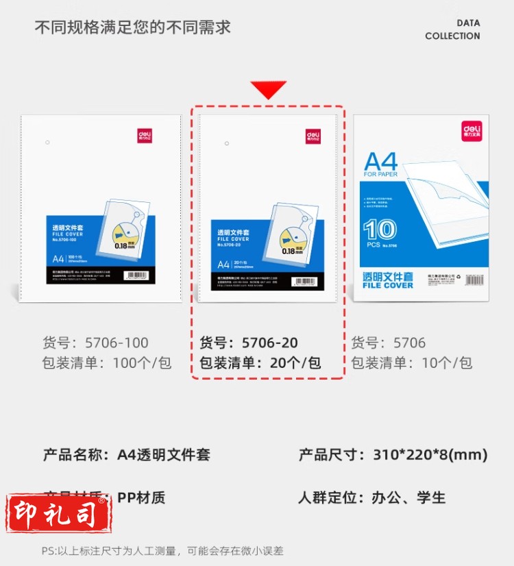 得力(deli)20只 透明文件套 文件夹L型文件袋 单片两页式文件袋 票据收纳 文件快递袋 5706-20