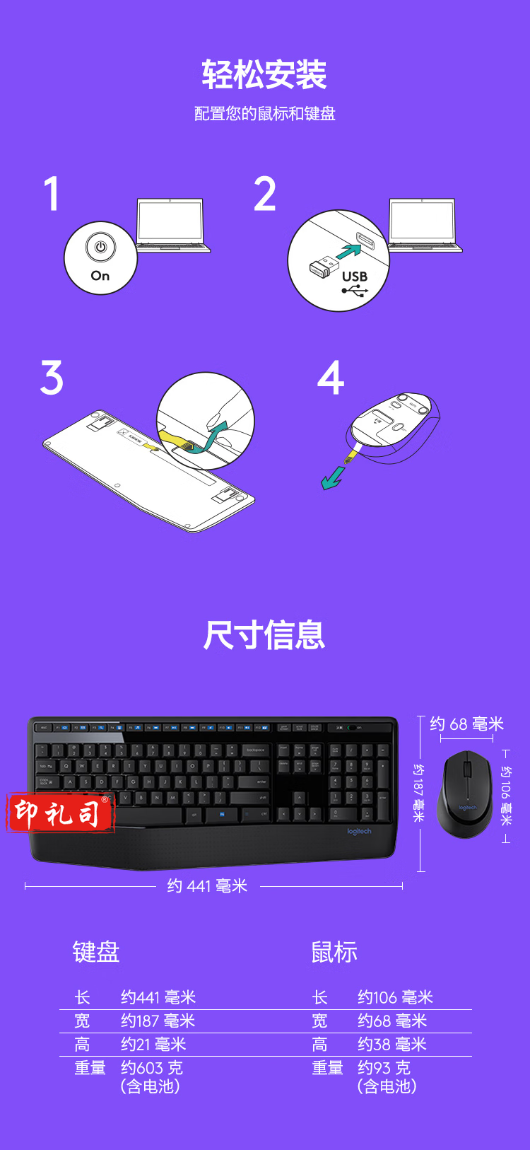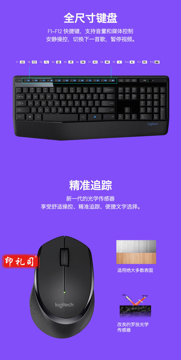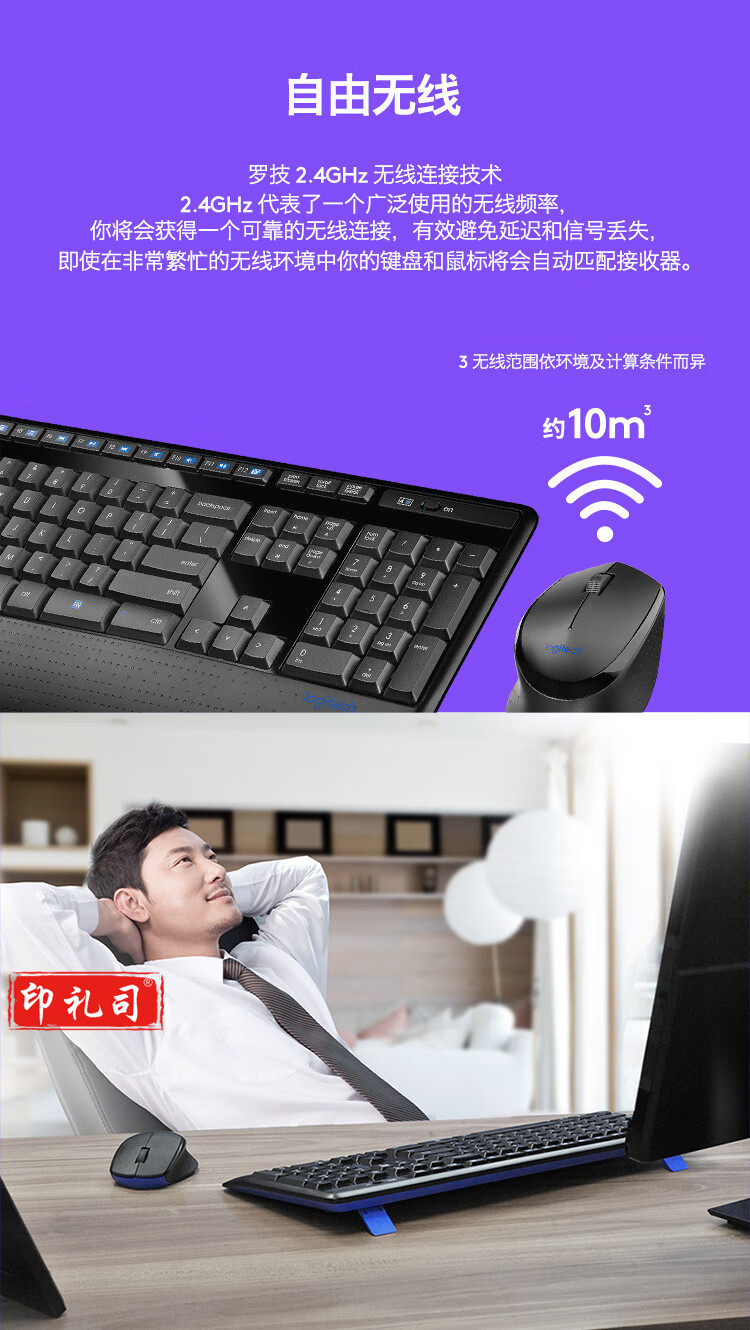 罗技(Logitech) MK346P(MK345同款)无线办公键鼠套装 键盘鼠标套装 全尺寸带手托 MK346P黑色