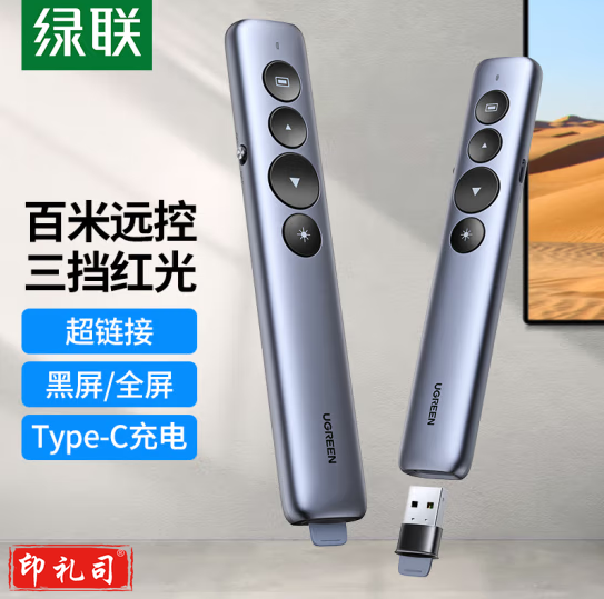 绿联15153 翻页笔 激光笔可充电 PPT投影笔教师教鞭电子演讲笔 多媒体幻灯片无线演示课件笔