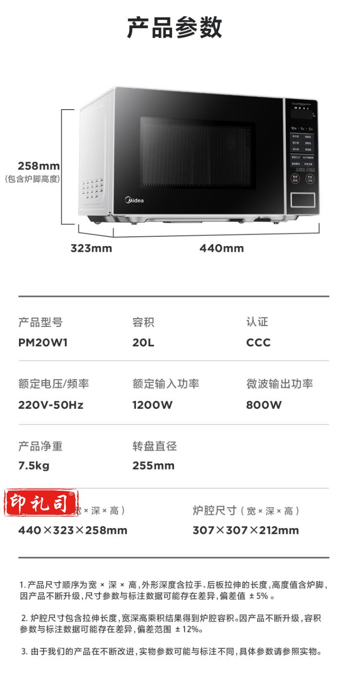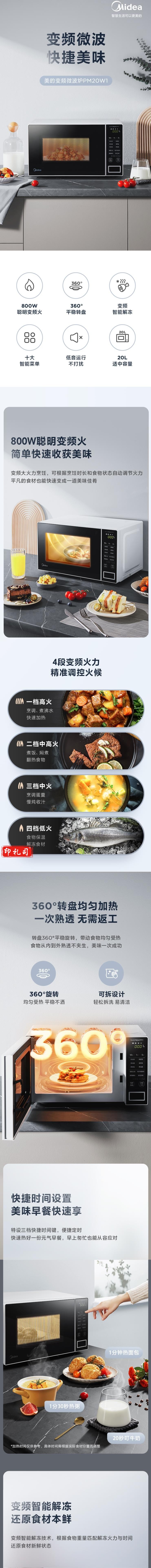 美的(Midea)PM20W1 快捷微波炉 快速加热 多功能菜单一键启动智能解冻 电子杀菌除味