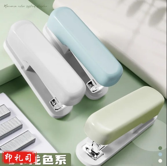 得力马卡龙色订书机多功能学生用起钉器小号钉书机家用书本装订-DLA301[白]中号-附3000钉