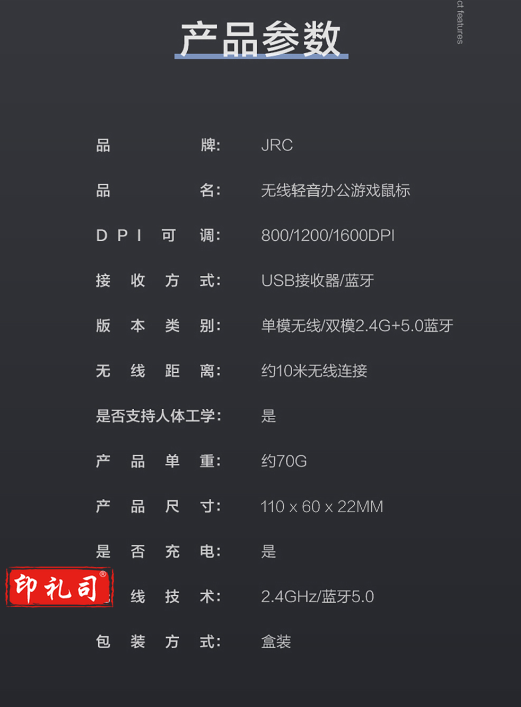 JRC 2.4G无线鼠标 办公鼠标 对称鼠标 华为苹果小米联想华硕戴尔适用 黑色