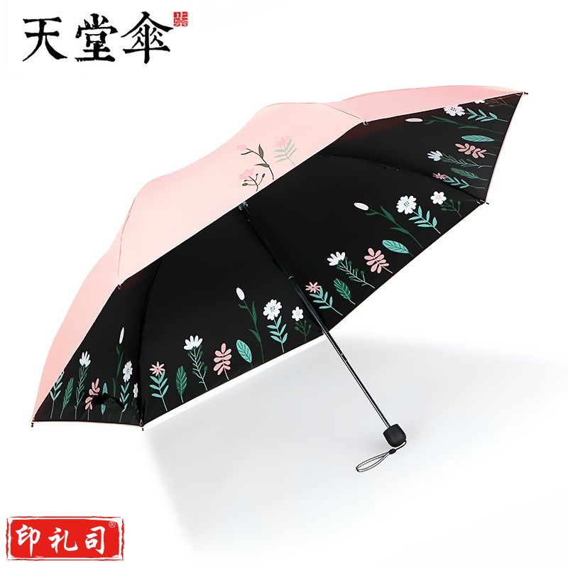 天堂伞 黑胶防晒遮阳伞 粉色-草色青青