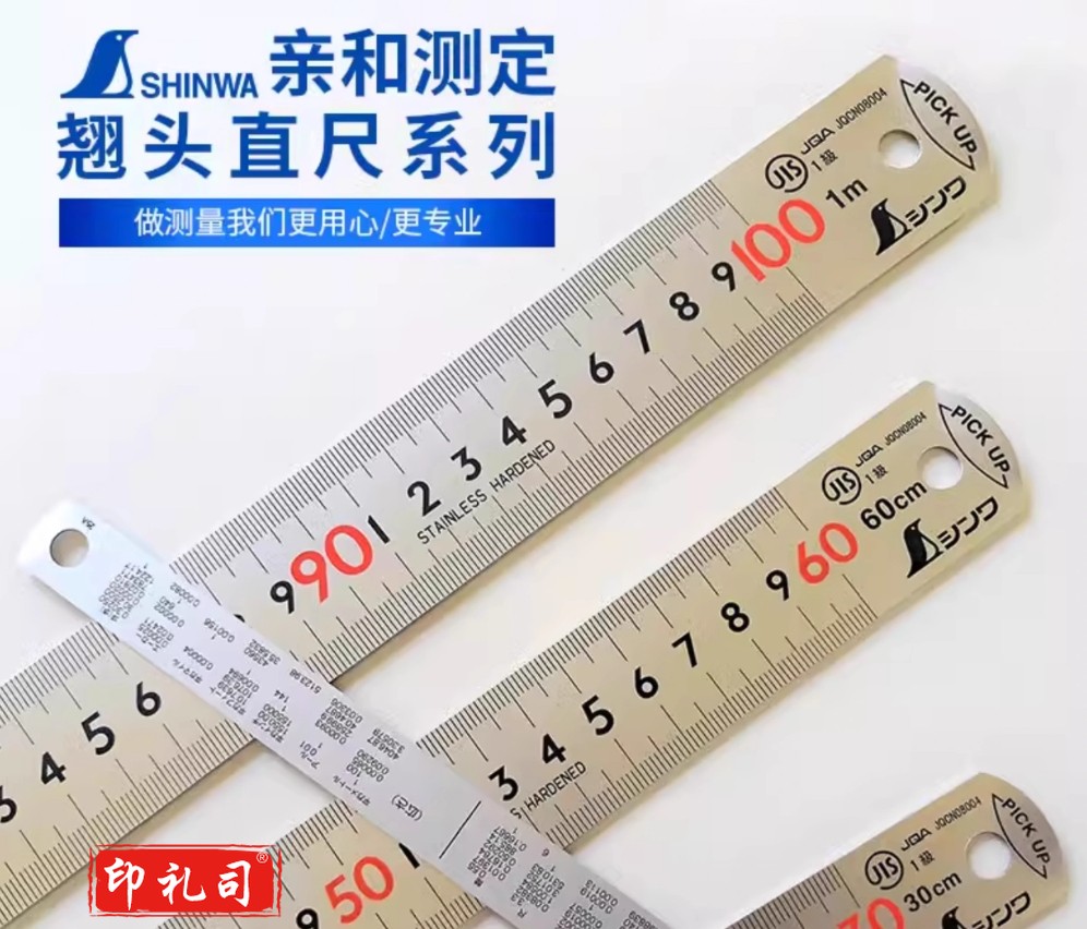 日本亲和企鹅牌高精度JIS工业级不锈钢直尺蚀刻钢板尺翘头13134 30CM