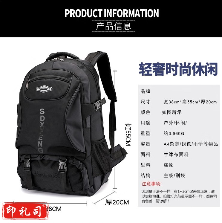袋鼠双肩包背包大容量户外运动旅行包男行李包登山包初高中大学生书包 黑色